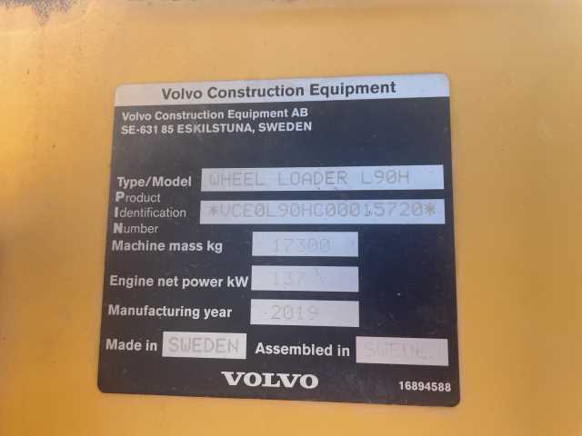Download Infosheet (PDF)Used 2019 Volvo L90H Wheel Loader - U5319